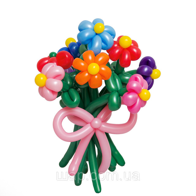 Яскравий і незвичайний букет «Ромашки», виконаний з повітряних куль, порадує не тільки дитини, але і підніме настрій дорослій дівчині. Це відмінний подарунок на день народження, 8 березня, день Святого Валентина або інше свято.